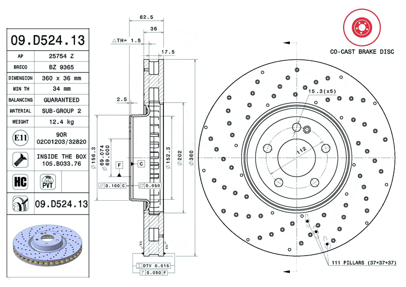 Tipo disco freno: Autoventilato N° fori: 5 Spessore disco freno [mm]: 24 Diametro centr...