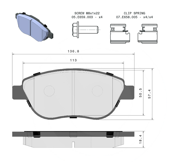 Larghezza [mm]: 137 Spessore [mm]: 19 Altezza [mm]: 58 Contatto avvisatore usura: senza co...